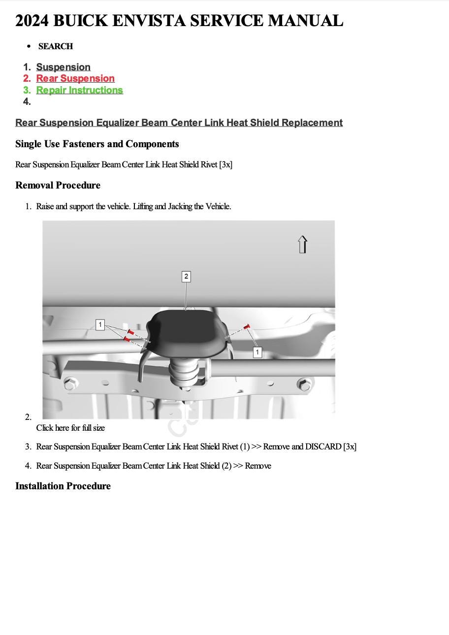 Save thousands on dealership labor costs by performing your own repairs, service, and maintenance with professional factory-authorized instructions for Buick Envista 2024 Service Manual Repair, Workshop Service Repair.
