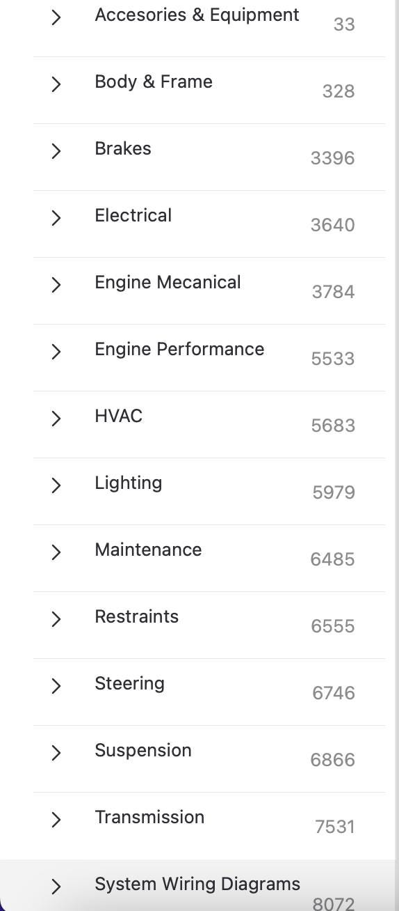 What’s Included: Professional automotive repair manuals covering complete engine overhaul, transmission rebuild, electrical system diagnostics, brake service, suspension repair, air conditioning maintenance, body work, and component replacement procedures. Each manual includes wiring diagrams, torque specifications, fluid capacities, parts diagrams, and exploded views.