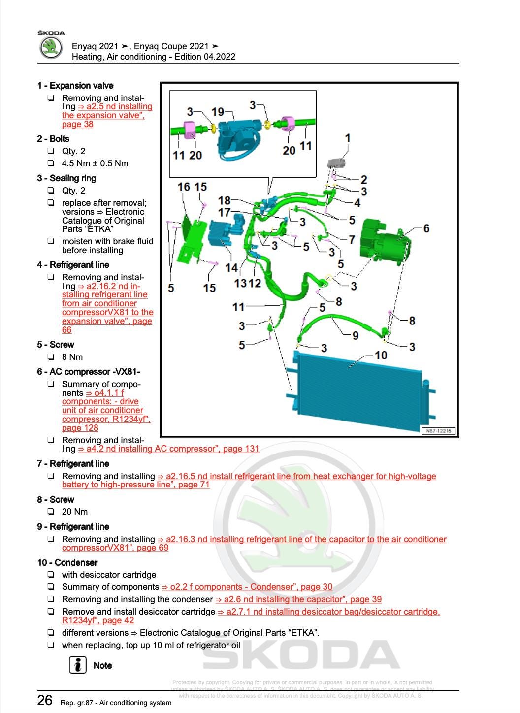 Save thousands on dealership labor costs by performing your own repairs, service, and maintenance with professional factory-authorized instructions for Skoda Enyaq 2020-2024 Service Manual Repair, Workshop Service Repair.