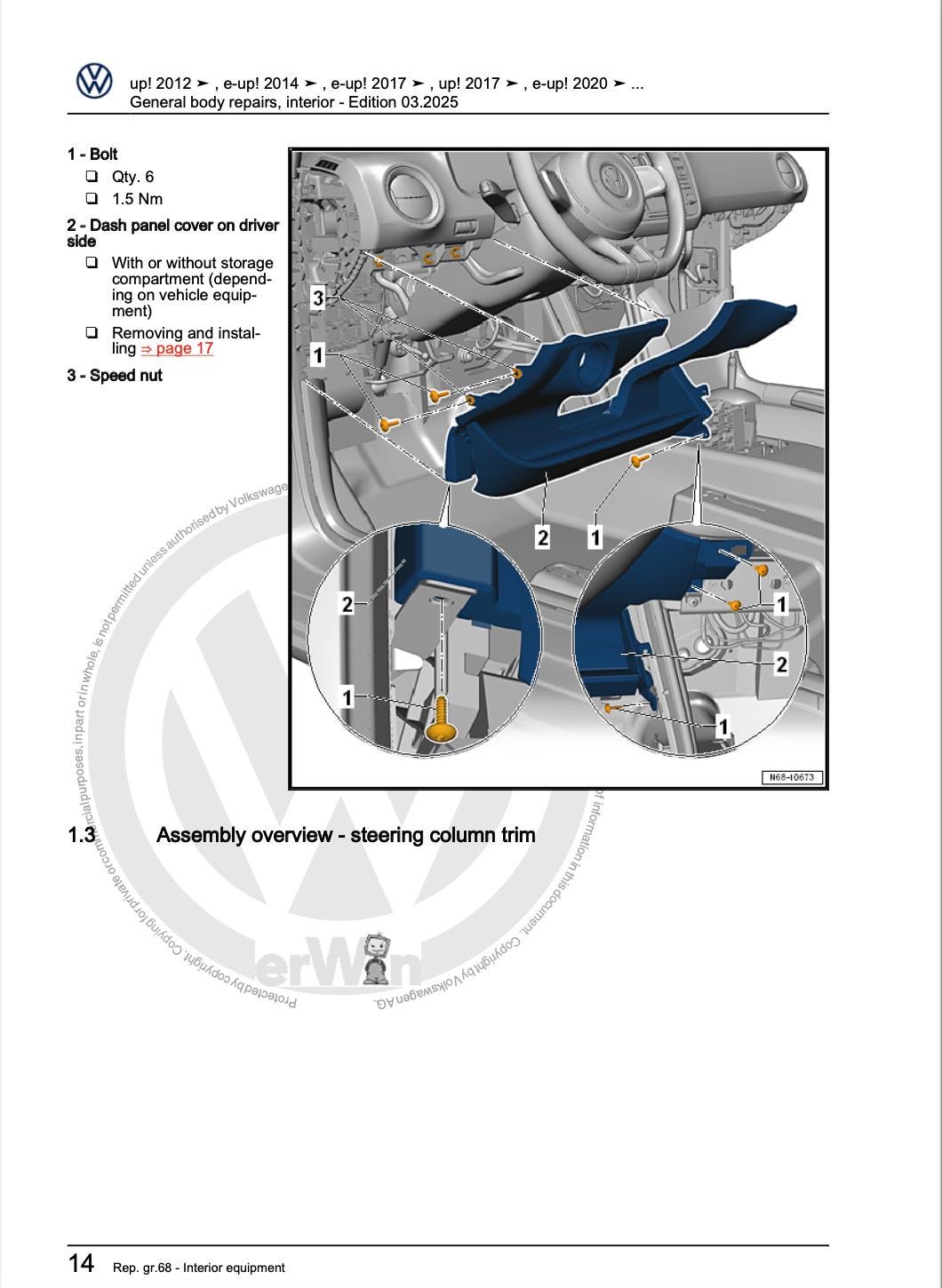 Save thousands on dealership labor costs by performing your own repairs, service, and maintenance with professional factory-authorized instructions for Volkswagen Up! 2012-2016 Service Manual Repair, Workshop Service Repair.